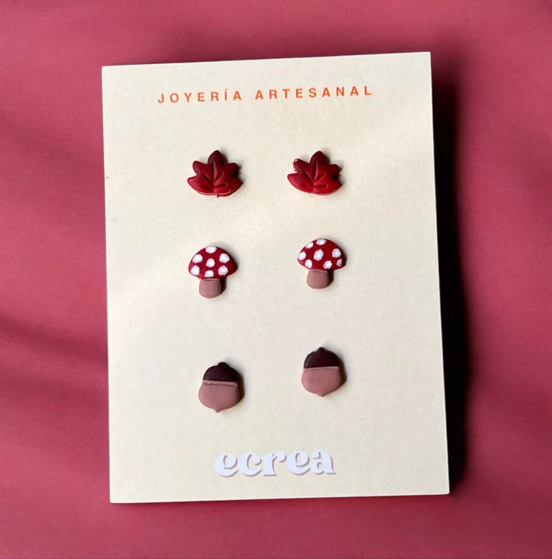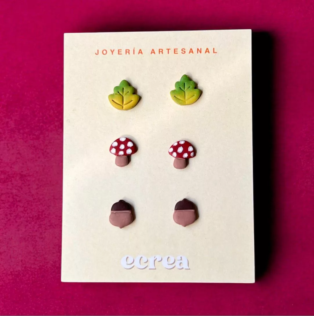 • Hechos a mano en arcilla polimérica, ultraligeros y resistentes.• Cierre de acero inoxidable, hipoalergénico.• Dimensiones: 1 × 1 cm